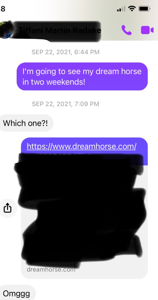 On the plane, I was nervous. What if this horse didn’t like me? What if we weren’t a match? I tried rationalizing with myself that this was a possibility, but I had this very bold feeling inside that despite my nerves, this horse was absolutely mine.