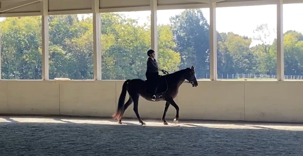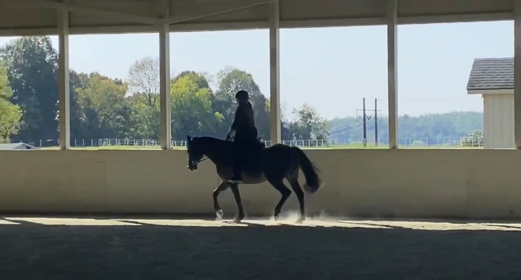 Everything about the first ride went as it should. Another rider hopped on her and took her through her “paces.” It was pretty clear she needed a lot of balance work at the canter, but she was sound and forward and seemed sane. I put on my bravery pants and got into the saddle.