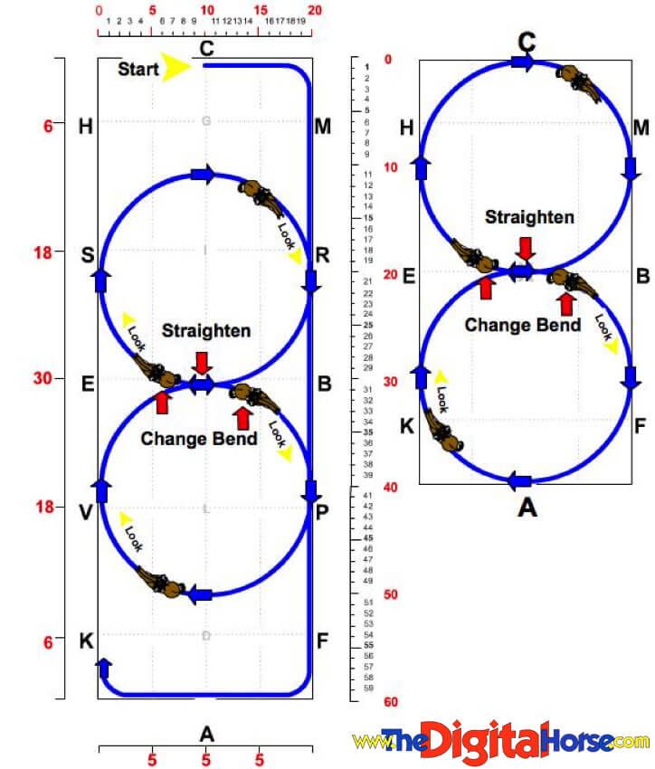 As I’ve mentioned, Kiss struggles with balance. The goal for us is to get to a more balanced and even-tempo-ed state through lots of half halts and working on various types of circles. Today, we worked on Figure 8s, which is basically riding two circles, switching directions in the middle.