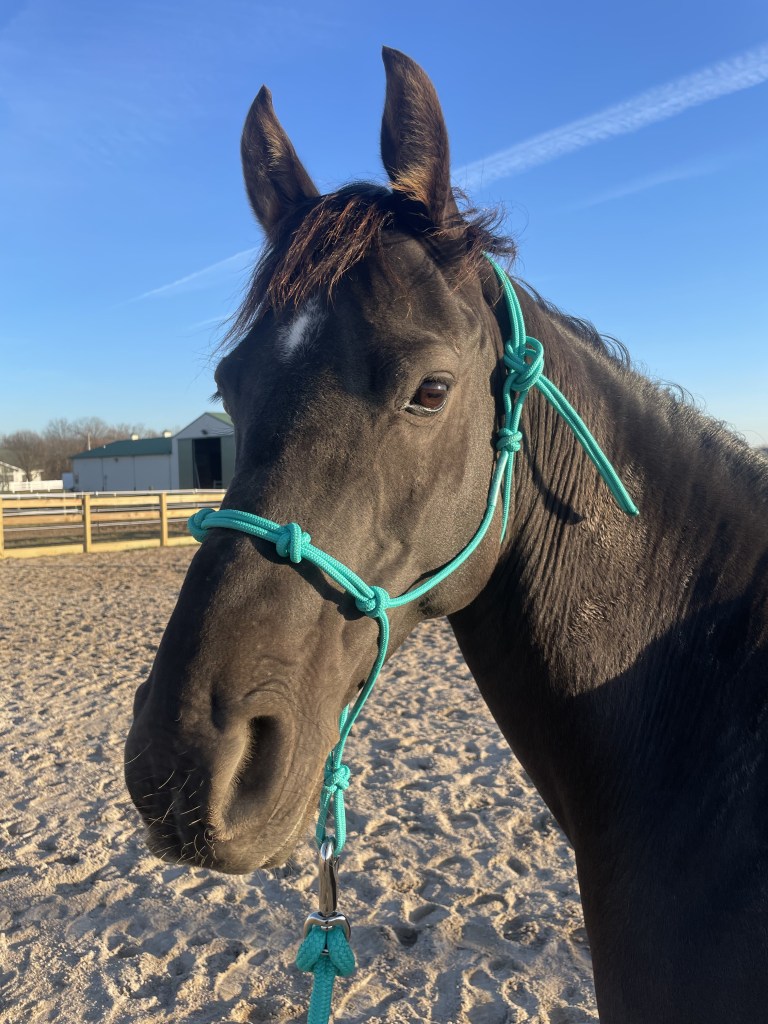 She did come into major heat shortly after arriving, so of course that made her even more attached to her two herd mates, Willow and Halim, in addition to all of the other horses on the property. She suddenly became so strongly attached that she did not want to be in the barn without them. I’ve had several sessions with her since to try to get her to be in the barn without panicking. She’s not quite there yet, but it’ll come, especially once her hormones calm down.
