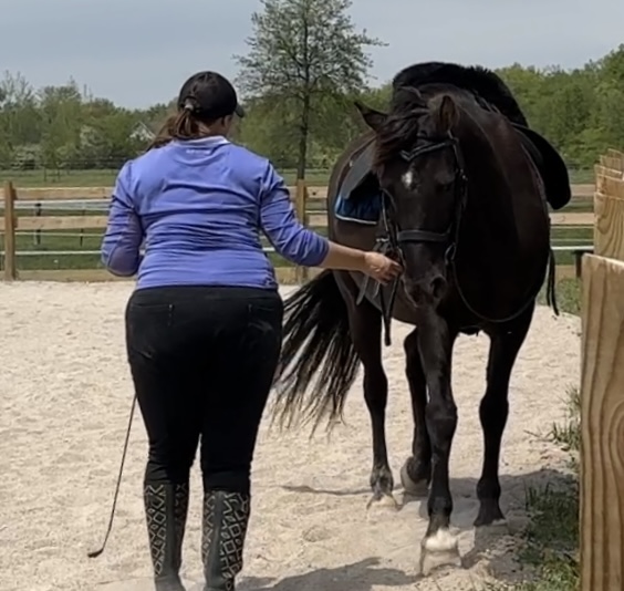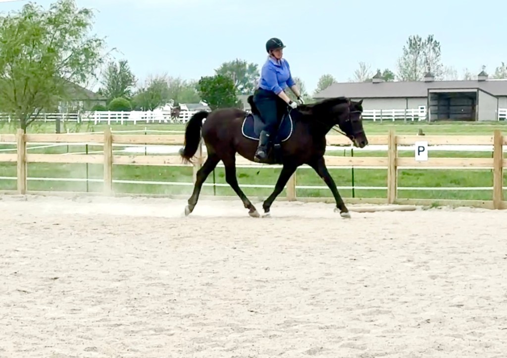 I gave her some time to settle in and, of course, it was winter, so I didn’t do much riding. I did an in-house lesson clinic at the beginning of April and she was going pretty well, and I’ve been doing ground work several times a week in addition to ramping back up with riding. It’s been pretty windy and she’s not the most fun to work with when it’s that windy, but I know it’ll settle down soon enough, as the stagnant, hellish summer of this Midwest locale accosts us every year with its suffocating presence. Fortunately, though, that’s when we get our best results. No distractions, no urges to dance in the wind or spook at a tree limb. That’s when it’s pure work. You just have to remember to hydrate!