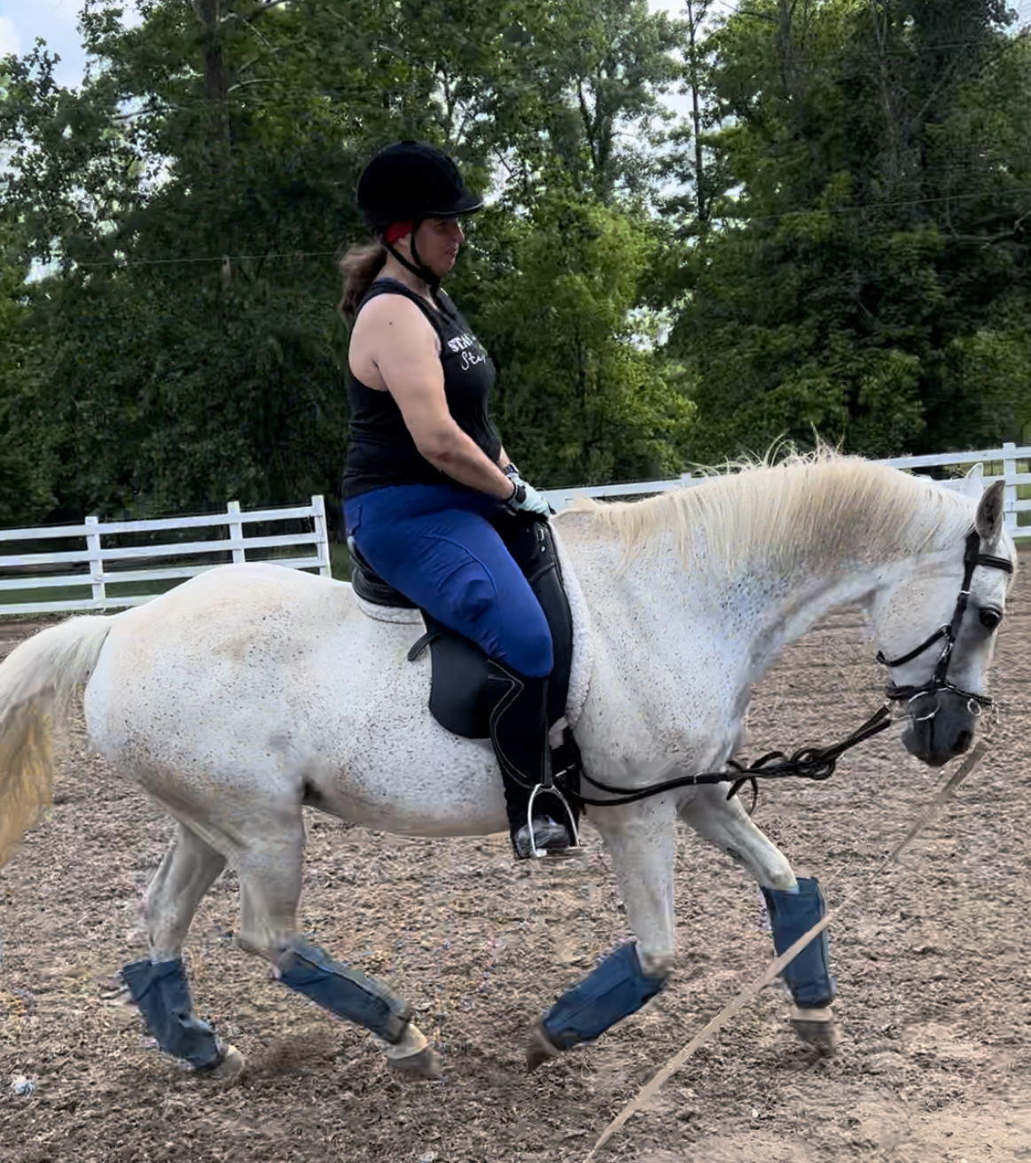 So, that’s when I decided to do some lunge lessons with my friend, Christen, who owns Calling Bird Farm LLC, which is a small barn west of St. Louis, MO that offers private lunge lessons and programs for kids. If you want to be humbled as a rider, go take a lunge lesson with someone who knows what they’re doing and find all of your weaknesses. During my last lesson, we worked on stirrup stands at the trot and I found that slight shifts in my stirrup position drastically helped my stability.